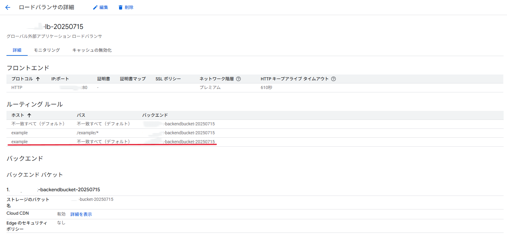 Google Cloud コンソール上でも期待値のurlmapが作成されていた。