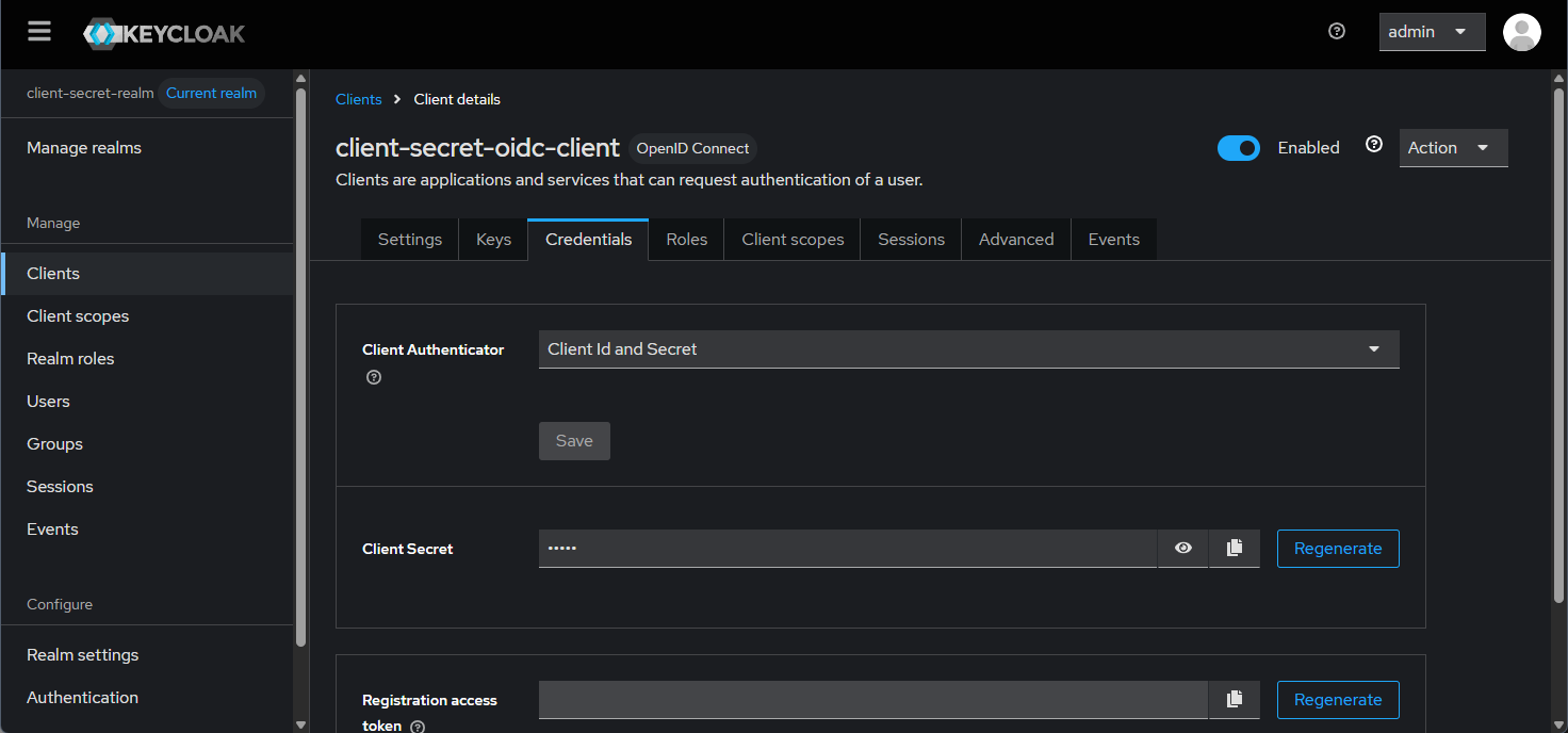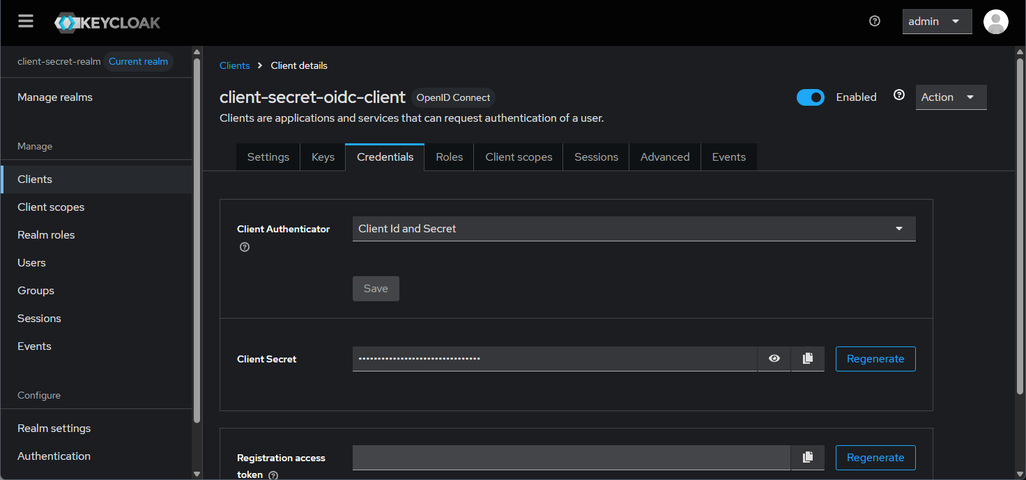 Keycloak の Client を Webコンソールからいじっていて、 Client Secret を誤って Regenerate してしまったので、以前の文字列に戻したい。